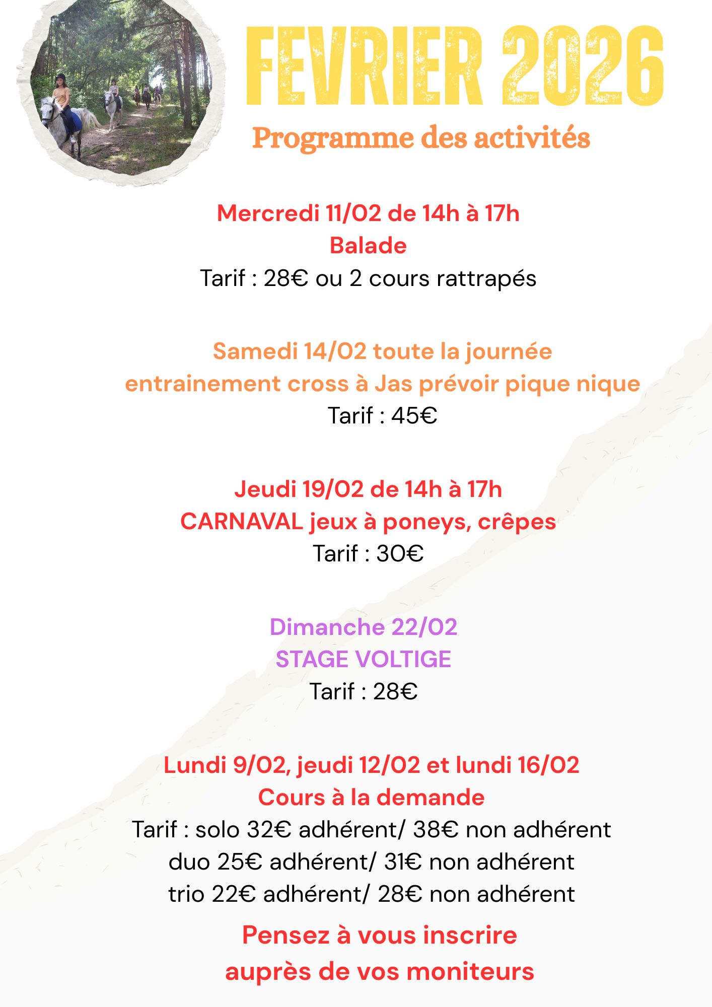 Voilà le programme des vacances de février concocté par nos moniteurs Anaïs et Gilles